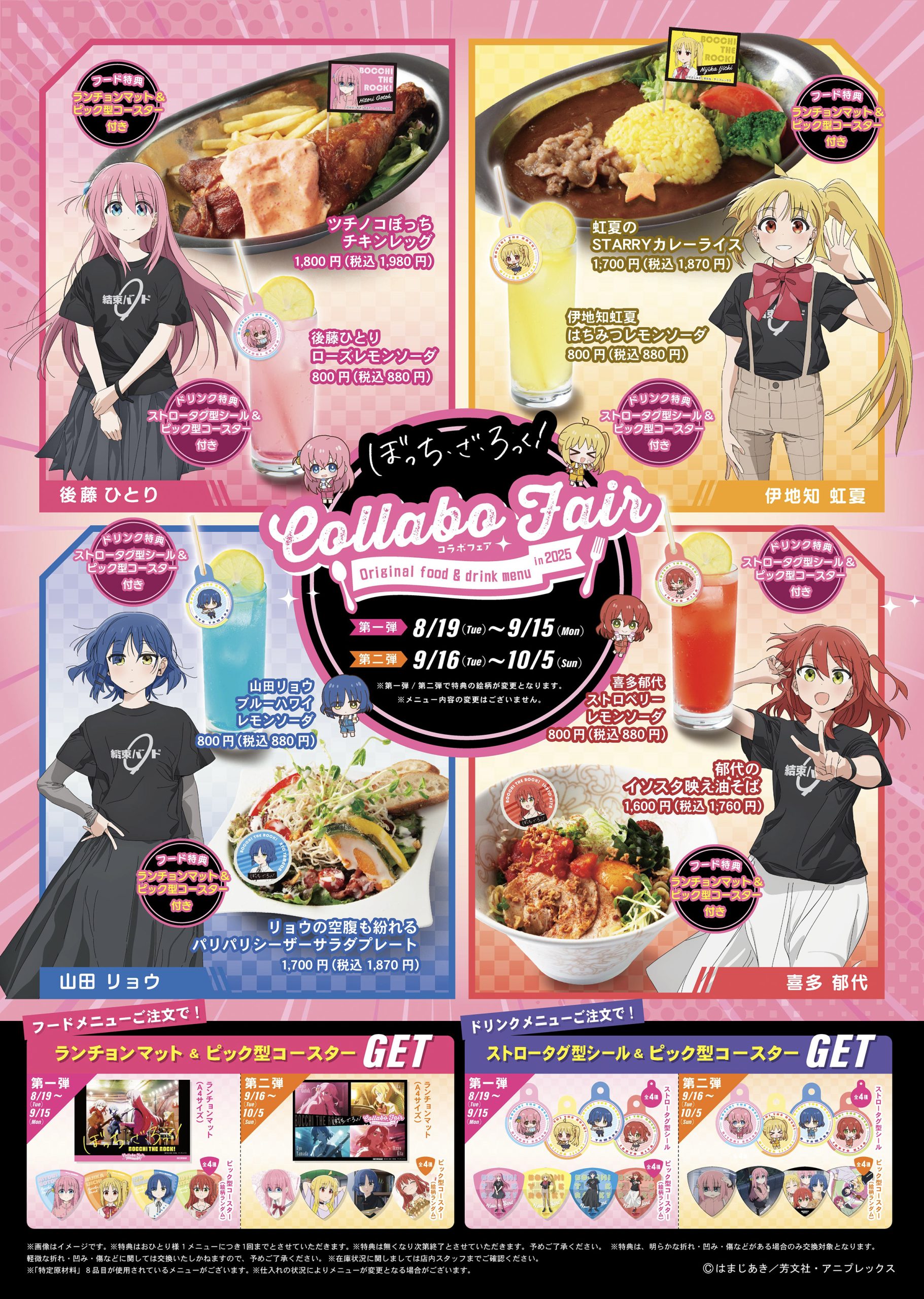 2025年8月19日(火)から10月5日(日)まで、「湯楽の里」・「喜楽里」温浴施設併設レストランにて、アニメ「ぼっち・ざ・ろっく!」のコラボフェアを開催することをお知らせします。